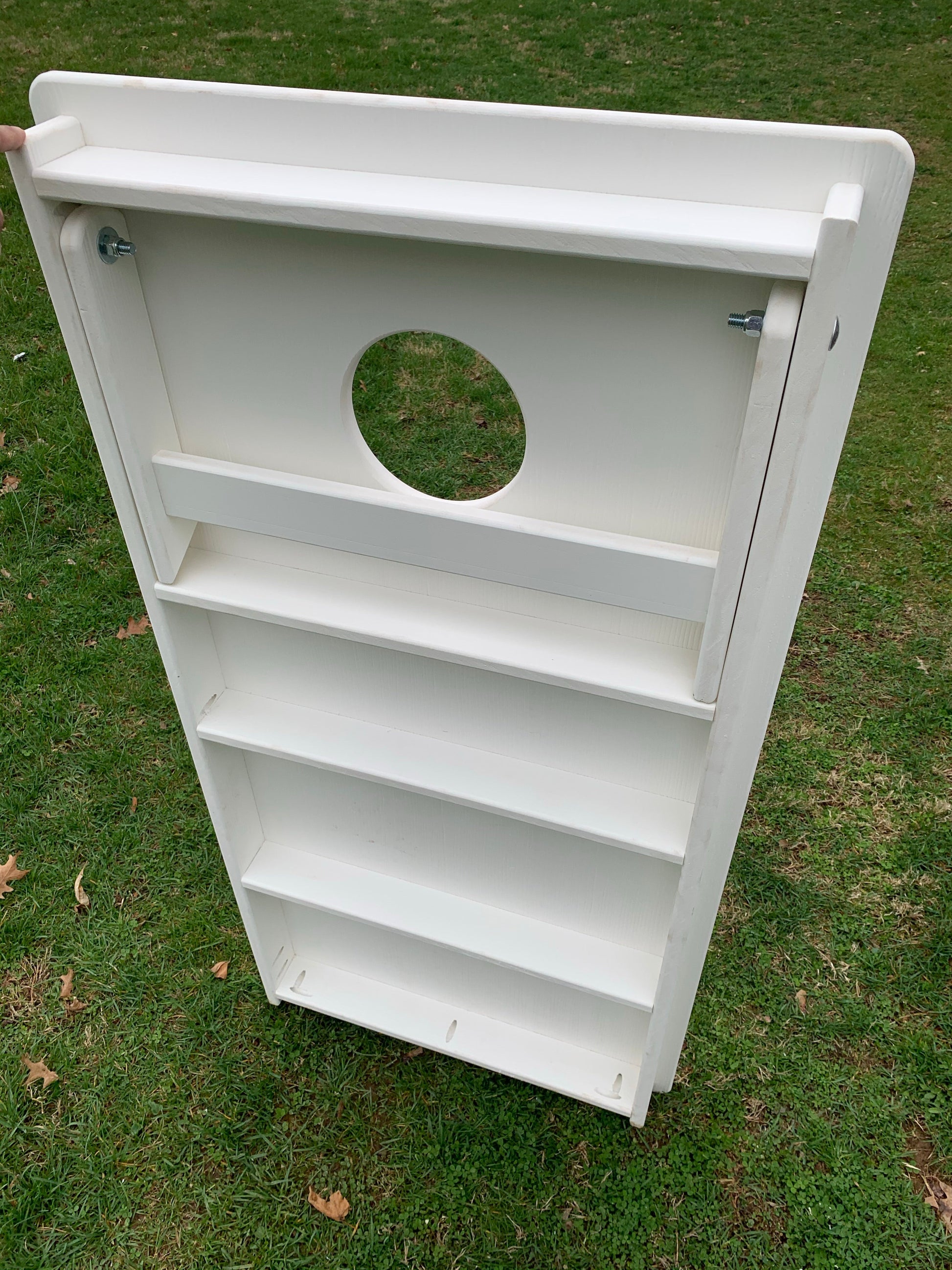 All Weather pro style cornhole boards. Made with solid white pvc tops and frames.